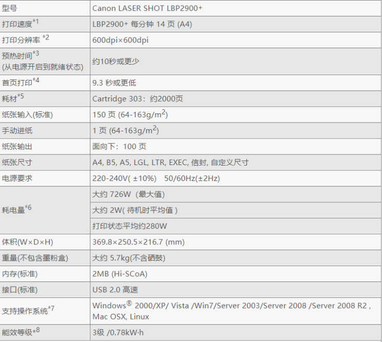 參數(shù) [品牌] 佳能 [型號(hào)] LBP2900+