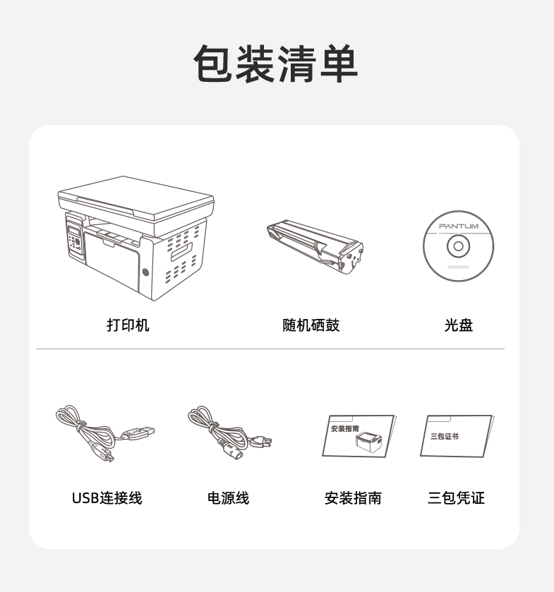 參數(shù) [品牌] 奔圖 [型號(hào)] M6202NW [毛重] 11.5KG